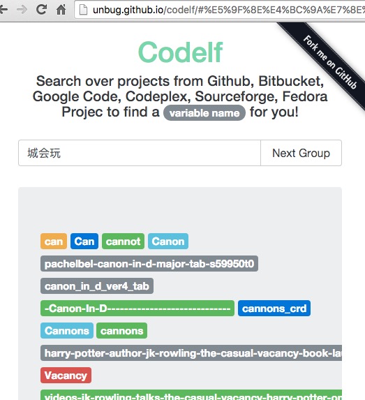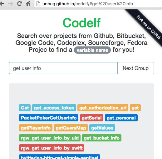 Codelf通過搜索在線開源平臺Github, Bitbucket, Google Code, Codeplex, Sourceforge, Fedora Projec的項目源碼,幫開發(fā)者從中找出已有的匹配關(guān)鍵字的變量名。這個搜索服務(wù)支持直接搜索中文。codeif支持中文查詢,輸入中文意思,codeif可以根據(jù)需要查詢盡可能滿足需要的結(jié)果,并展示與查詢結(jié)果相關(guān)的支持各種編程語言的代碼片段以及代碼庫。