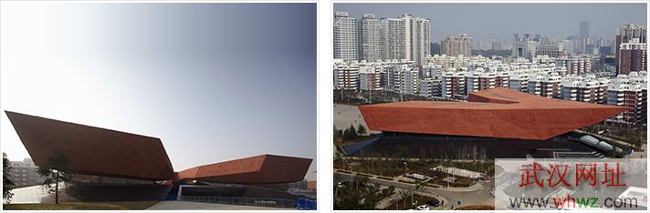 辛亥革命博物館的外形設(shè)計(jì)獨(dú)特,融合了中國傳統(tǒng)建筑元素和現(xiàn)代建筑特色,高臺大屋頂?shù)募軜?gòu),彰顯中國建筑“雙坡屋頂”和飛檐翹角的特質(zhì);幾何形外觀和“楚國紅”色調(diào),寓意敢為人先的首義精神,俯瞰呈V字造型,寓意勝利和武漢的騰飛。