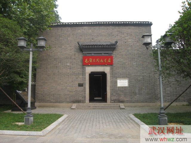 武昌毛澤東舊居位于武昌都府堤41號,是毛澤東1927年主持農講所工作并在武漢從事革命活動時的辦公地兼居所,是當時中共中央農委的所在地,也是毛澤東、楊開慧一家最后團聚的地方。毛澤東在這里完成了著名的《湖南農民運動考察報告》。舊居坐東朝西,磚木結構,青磚灰瓦,四周為硬山榍頭風火外墻,大門為單坡屋檐,墻體有門楣裝飾,朱紅色的板門上裝有門釘、門鈸。占地面積909平方米,建筑面積436平方米,院內三進三天井,內隔斷均為木質板壁和隔扇門窗,后檐有門,貫通呼應。地面裝有石質雙錢式地漏,廳堂中有亮瓦,采光充分,凈空很高,體現(xiàn)了對武漢氣候特點的適應,具有典型江南民居風格,體現(xiàn)了武漢地域建筑特點。正門額上木質紅色橫匾,上有郭沫若同志題寫的“毛澤東同志舊居”七個金色大字。